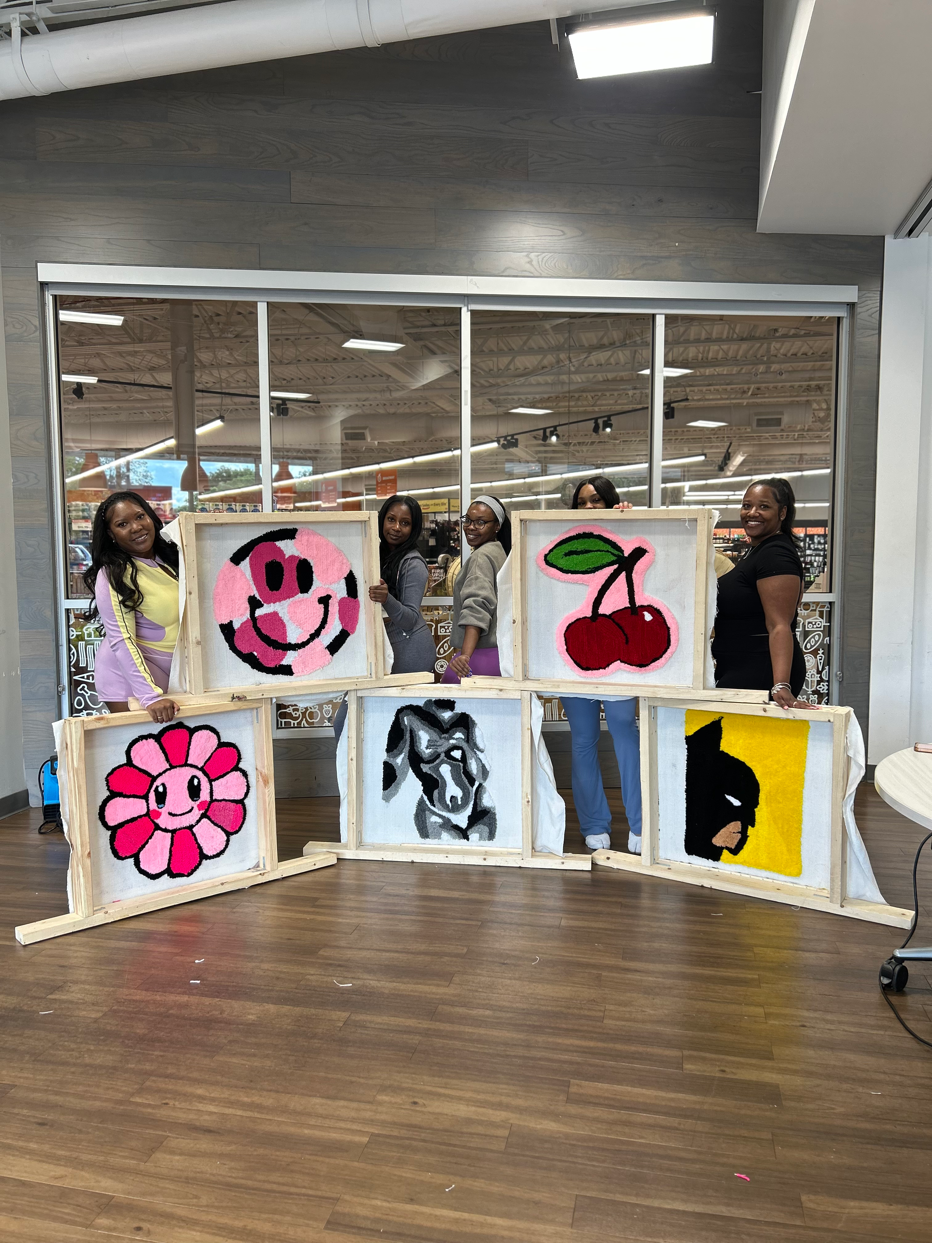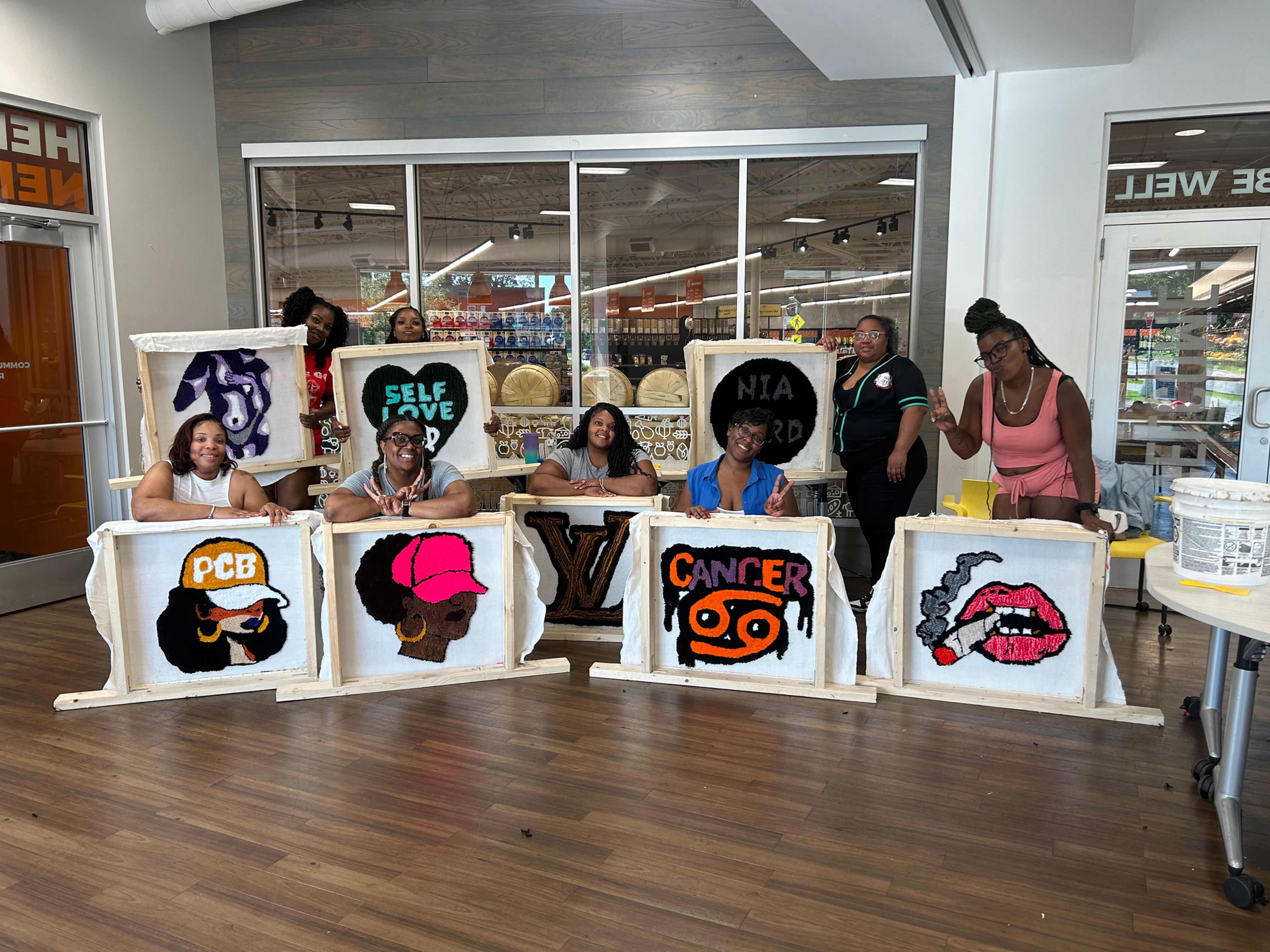 A finished 3x3 tufted artwork that reflects your unique design, ready to hang and enjoy.